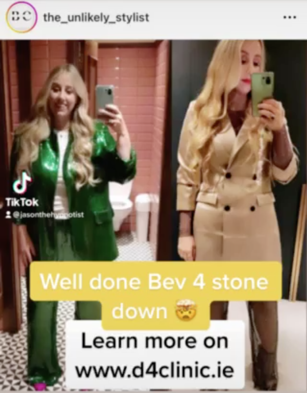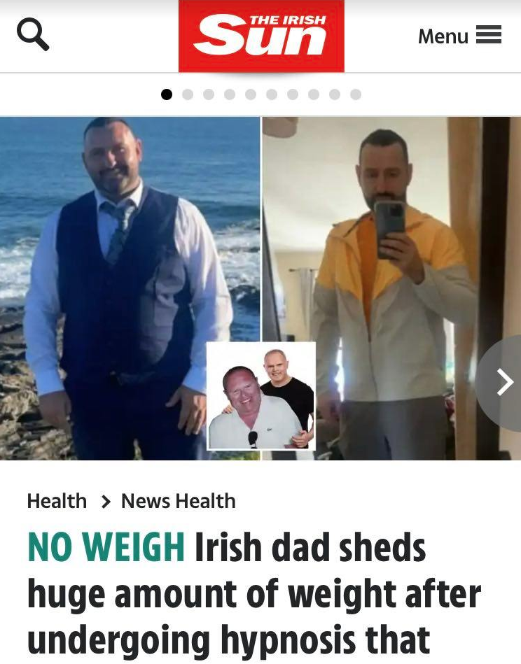 Our new ambassador Sammy (38) from Dublin lost 3 stone in just 3 months on our program Speaking about her success she said “I found Jason O’Callaghan and the method of hypnosis very beneficial for weight loss. In 3 months, I lost 3 stone and am delighted. The thing I loved most about it was that it seemed to act behind the scenes in my mind and make the whole process quite easy and achievable.